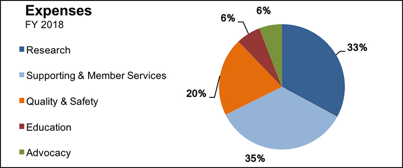 The College is well positioned financially to be able to respond and react to the needs of the profession and its members. Approximately 16% of the total net assets of $134.5M is undesignated, with the remainder set aside for operating reserve, innovation fund, strategic reinvestment, and net investment in property and equipment.