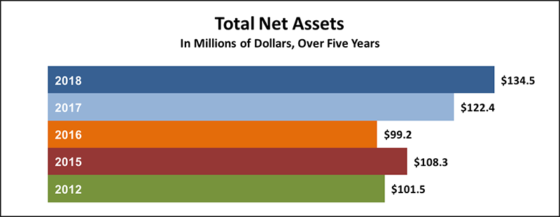 The College continues to maintain strong financial performance. The net from operations was $3.6 million for the year. The operating results for 2018 were in line with expectations and are consistent with cyclical peaks/valleys driven by accreditation renewals. Increased expenses in 2018 reflect a planned growth in staff to align resources with program operations, formalizing the College’s Data Science Institute, and investments in support of strategic activities.. The non-operating income primarily consists of gains on the investment portfolio. The College does not rely on the investment earnings to balance the operating budget; the gain had no direct impact on the operations of the College.