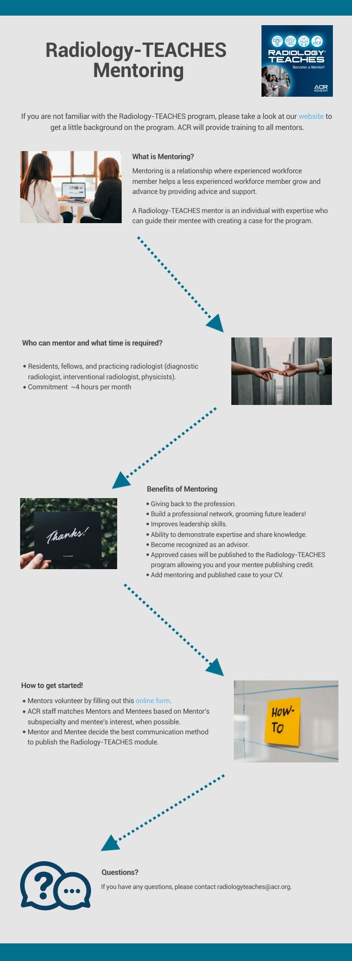 For questions about the Radiology-TEACHES program, contact radiologyteaches@acr.org.