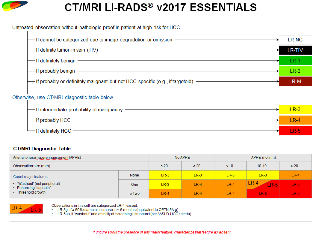 The LI-RADS Committee has approved an updated CT/MRI diagnostic algorithm, a new treatment response assessment algorithm, basic management guidance, basic reporting guidance, key definitions, core supporting material, and FAQ.