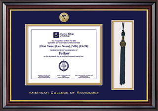 Congratulations on your recognition as a Fellow of the American College of Radiology (FACR). To display your achievement, a choice of handcrafted and custom-made frames are available for purchase for your FACR certificate. These unique frames feature gold embossing of the official FACR merit seal and name or with the ACR gold medallion. The frames will preserve and protect your certificate.