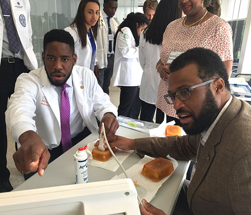 ![]() Lexia Chadwick and her preceptor, Dr. Raymond Wynn, presenting her poster at NMA 2019 |