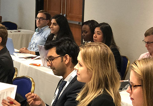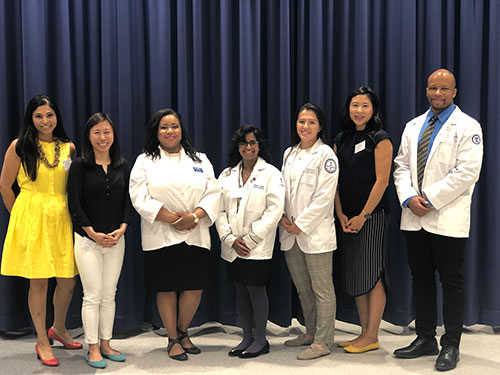 ![]() Manal Saif, Sherley Demetrius and Rosa Miguel Garcia (back row, 2nd, 3rd, 4th from left) participate in medical student session during ACR 2018 |