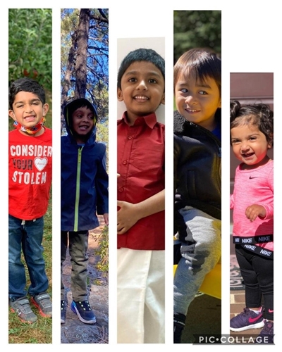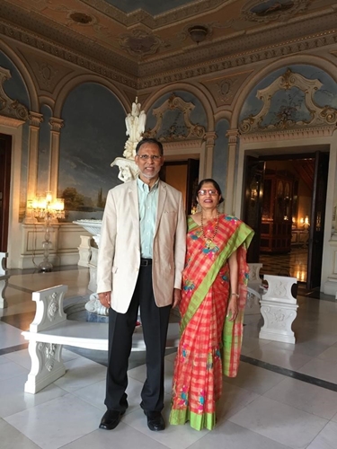 My husband and I visited India in 2018 and had a photo taken at the beautiful Taj Falaknuma Palace Hotel in Hyderabad (Figure 2). All my nieces and nephews are grown up now, and three of them are in the U.S. and one in India. We currently have five beautiful grandchildren (Figure 3).