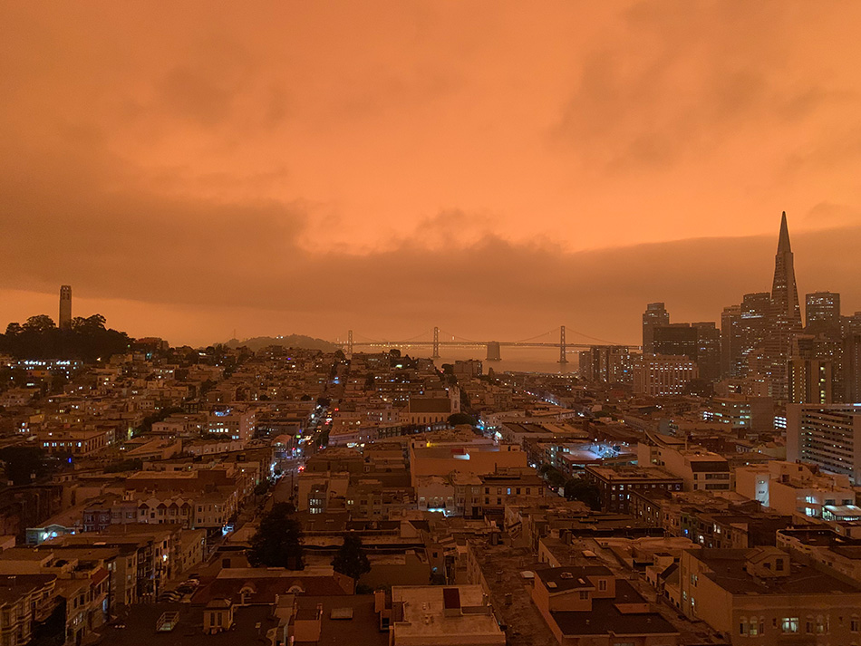 ![]() 2020 fires near San Francisco, CA, turn the mid-morning sky an unnerving orange. |