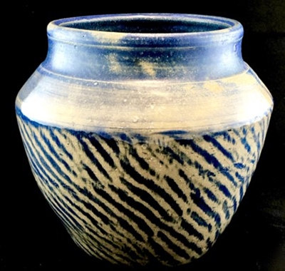 Next, the pot is fired for the first time (bisque firing), followed by a glaze that is placed over the entire pot, and then the pot is fired again (glaze firing). This process creates intricate and beautiful multicolor designs. In my work, I mainly use rope to impress the clay but I also utilize other materials such as pinecones, shells and incised stamps to make textural marks in the clay. See the photos below for examples of my work.